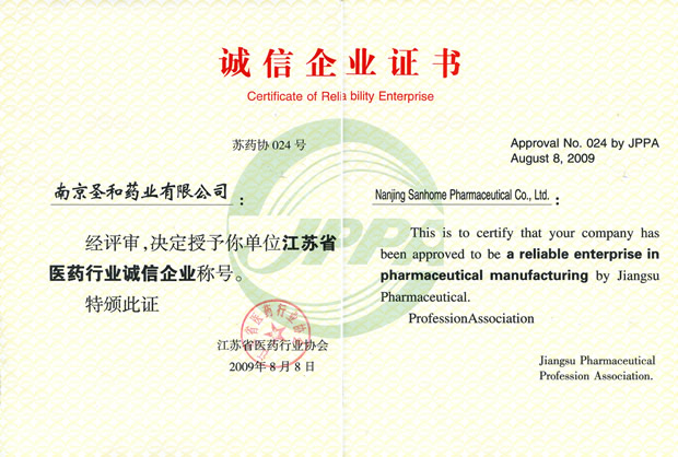 2009江蘇省醫(yī)藥行業(yè)誠信企業(yè)稱號