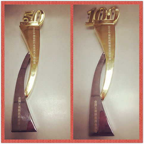 2015年度中國醫(yī)藥行業(yè)成長50強、百強企業(yè)(獎杯)
